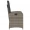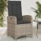 Chaise inclinable de jardin avec coussins gris résine tresséeDétendez-vous et profitez de l'extérieur dans cette chaise de jardin inclinable confortable ! Matériau durable : la résine tressée, également connue sous le nom de poly rotin, est un matériau synthétique solide et nécessitant peu d'entretien qui ressemble au rotin naturel. Il est léger, facile à nettoyer et couramment utilisé pour les meubles d'extérieur en raison de sa durabilité et de ses propriétés de résistance aux intempéries. Dossier réglable : ce meuble de jardin est équipé d'une poignée sur le côté droit. Vous pouvez régler le dossier dans n'importe quelle position en tirant sur la poignée. Vous pouvez également remettre rapidement le dossier dans sa position initiale à l'aide de la poignée. Expérience d'assise confortable : ce mobilier d'extérieur, doté de coussins épais, offre une expérience d'assise confortable. Housse amovible et lavable : ces coussins de siège sont dotés de housses amovibles pour un lavage et un entretien faciles. Cadre robuste et stable : le cadre en acier enduit de poudre assure la solidité et la stabilité du meuble de jardin pour une utilisation quotidienne à l'extérieur. Bon à savoir : Pour que vos meubles d'extérieur restent beaux, nous vous recommandons de les protéger avec une housse imperméable. Maximum 110 kg par siège. Soyez conscient du risque de feux ouverts et d'autres sources de forte chaleur à proximité du produit.