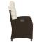 Chaise inclinable de jardin avec coussins marron résine tresséeDétendez-vous et profitez de l'extérieur dans cette chaise de jardin inclinable confortable ! Matériau durable : la résine tressée, également connue sous le nom de poly rotin, est un matériau synthétique solide et nécessitant peu d'entretien qui ressemble au rotin naturel. Il est léger, facile à nettoyer et couramment utilisé pour les meubles d'extérieur en raison de sa durabilité et de ses propriétés de résistance aux intempéries. Dossier réglable : ce siège de jardin est doté d'une poignée. Vous pouvez régler le dossier dans n'importe quelle position en tirant sur la poignée et le remettre rapidement dans sa position initiale. Expérience d'assise confortable : ce mobilier d'extérieur, doté de coussins épais, offre une expérience d'assise confortable. Housse amovible et lavable : ces coussins de siège sont dotés de housses amovibles pour un lavage et un entretien faciles. Cadre robuste et stable : le cadre en acier enduit de poudre assure la solidité et la stabilité du meuble de jardin pour une utilisation quotidienne à l'extérieur. Bon à savoir : Pour que vos meubles d'extérieur restent beaux, nous vous recommandons de les protéger avec une housse imperméable. Maximum 110 kg par siège. Soyez conscient du risque de feux ouverts et d'autres sources de forte chaleur à proximité du produit.