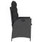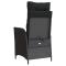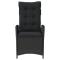 Chaise inclinable de jardin avec coussins noir résine tresséeDétendez-vous et profitez de l'extérieur dans cette chaise de jardin inclinable confortable ! Matériau durable : la résine tressée, également connue sous le nom de poly rotin, est un matériau synthétique solide et nécessitant peu d'entretien qui ressemble au rotin naturel. Il est léger, facile à nettoyer et couramment utilisé pour les meubles d'extérieur en raison de sa durabilité et de ses propriétés de résistance aux intempéries. Dossier réglable : ce meuble de jardin est équipé d'une poignée sur le côté droit. Vous pouvez régler le dossier dans n'importe quelle position en tirant sur la poignée. Vous pouvez également remettre rapidement le dossier dans sa position initiale à l'aide de la poignée. Expérience d'assise confortable : ce mobilier d'extérieur, doté de coussins épais, offre une expérience d'assise confortable. Housse amovible et lavable : ces coussins de siège sont dotés de housses amovibles pour un lavage et un entretien faciles. Cadre robuste et stable : le cadre en acier enduit de poudre assure la solidité et la stabilité du meuble de jardin pour une utilisation quotidienne à l'extérieur. Bon à savoir : Pour que vos meubles d'extérieur restent beaux, nous vous recommandons de les protéger avec une housse imperméable. Maximum 110 kg par siège. Soyez conscient du risque de feux ouverts et d'autres sources de forte chaleur à proximité du produit. ,