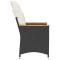 Chaise inclinable de jardin avec coussins noir résine tresséeDétendez-vous et profitez de l'extérieur dans cette chaise de jardin inclinable confortable ! Matériau durable : la résine tressée, également connue sous le nom de poly rotin, est un matériau synthétique solide et nécessitant peu d'entretien qui ressemble au rotin naturel. Il est léger, facile à nettoyer et couramment utilisé pour les meubles d'extérieur en raison de sa durabilité et de ses propriétés de résistance aux intempéries. Dossier réglable : ce siège de jardin est doté d'une poignée. Vous pouvez régler le dossier dans n'importe quelle position en tirant sur la poignée et le remettre rapidement dans sa position initiale. Expérience d'assise confortable : ce mobilier d'extérieur, doté de coussins épais, offre une expérience d'assise confortable. Housse amovible et lavable : ce coussin de siège est doté d'une housse amovible pour un lavage et un entretien faciles. Le coussin de dossier est doté d'un rabat à l'arrière pour une fixation facile au dossier. Cadre robuste et stable : le cadre en acier enduit de poudre assure la solidité et la stabilité du meuble de jardin pour une utilisation quotidienne à l'extérieur. Bon à savoir : Pour que vos meubles d'extérieur restent beaux, nous vous recommandons de les protéger avec une housse imperméable. ,