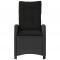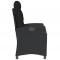 Chaise inclinable de jardin avec coussins noir résine tresséeDétendez-vous et profitez de l'extérieur dans cette chaise de jardin inclinable confortable ! Matériau durable : la résine tressée, également connue sous le nom de poly rotin, est un matériau synthétique solide et nécessitant peu d'entretien qui ressemble au rotin naturel. Il est léger, facile à nettoyer et couramment utilisé pour les meubles d'extérieur en raison de sa durabilité et de ses propriétés de résistance aux intempéries. Dossier réglable : ce siège de jardin est doté d'une poignée. Vous pouvez régler le dossier dans n'importe quelle position en tirant sur la poignée et le remettre rapidement dans sa position initiale. Expérience d'assise confortable : ce mobilier d'extérieur, doté de coussins épais, offre une expérience d'assise confortable. Housse amovible et lavable : ces coussins de siège sont dotés de housses amovibles pour un lavage et un entretien faciles. Cadre robuste et stable : le cadre en acier enduit de poudre assure la solidité et la stabilité du meuble de jardin pour une utilisation quotidienne à l'extérieur. Bon à savoir : Pour que vos meubles d'extérieur restent beaux, nous vous recommandons de les protéger avec une housse imperméable. Maximum 110 kg par siège. Soyez conscient du risque de feux ouverts et d'autres sources de forte chaleur à proximité du produit.