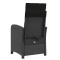 Chaise inclinable de jardin avec coussins noir résine tresséeDétendez-vous et profitez de l'extérieur dans cette chaise de jardin inclinable confortable ! Matériau durable : la résine tressée, également connue sous le nom de poly rotin, est un matériau synthétique solide et nécessitant peu d'entretien qui ressemble au rotin naturel. Il est léger, facile à nettoyer et couramment utilisé pour les meubles d'extérieur en raison de sa durabilité et de ses propriétés de résistance aux intempéries. Dossier réglable : ce meuble de jardin est équipé d'une poignée sur le côté droit. Vous pouvez régler le dossier dans n'importe quelle position en tirant sur la poignée. Vous pouvez également remettre rapidement le dossier dans sa position initiale à l'aide de la poignée. Expérience d'assise confortable : ce mobilier d'extérieur, doté de coussins épais, offre une expérience d'assise confortable. Housse amovible et lavable : ces coussins de siège sont dotés de housses amovibles pour un lavage et un entretien faciles. Cadre robuste et stable : le cadre en acier enduit de poudre assure la solidité et la stabilité du meuble de jardin pour une utilisation quotidienne à l'extérieur. Bon à savoir : Pour que vos meubles d'extérieur restent beaux, nous vous recommandons de les protéger avec une housse imperméable. Maximum 110 kg par siège. Soyez conscient du risque de feux ouverts et d'autres sources de forte chaleur à proximité du produit.