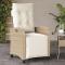 Chaise inclinable de jardin et repose-pied beige résine tresséeDétendez-vous et profitez de l'extérieur dans cette chaise de jardin inclinable confortable ! Matériau durable : la résine tressée, également connue sous le nom de poly rotin, est un matériau synthétique solide et nécessitant peu d'entretien qui ressemble au rotin naturel. Il est léger, facile à nettoyer et couramment utilisé pour les meubles d'extérieur en raison de sa durabilité et de ses propriétés de résistance aux intempéries. Dossier et repose-pied réglables : ce siège de jardin est doté d'une poignée. Vous pouvez régler le dossier et le repose-pied dans n'importe quelle position en tirant sur la poignée, et les remettre rapidement dans leur position initiale. Expérience d'assise confortable : ce mobilier d'extérieur, doté de coussins épais, offre une expérience d'assise confortable. Housse amovible et lavable : ces coussins de siège sont dotés de housses amovibles pour un lavage et un entretien faciles. Cadre robuste et stable : le cadre en acier enduit de poudre assure la solidité et la stabilité du meuble de jardin pour une utilisation quotidienne à l'extérieur. Bon à savoir : Pour que vos meubles d'extérieur restent beaux, nous vous recommandons de les protéger avec une housse imperméable. Maximum 110 kg par siège. Soyez conscient du risque de feux ouverts et d'autres sources de forte chaleur à proximité du produit. ,