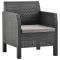 Chaise de jardin avec coussin Anthracite 63x65x76 cm PP RotinCette chaise de jardin avec coussin est conçue pour être le point de mire de votre jardin, patio ou terrasse. Le fauteuil de jardin est en polypropylène, ce qui le rend facile à nettoyer et convient à un usage dehors. Le dossier ergonomique et l'accoudoir arrondi inclus offrent un confort d'assise supplémentaire. Grâce à sa construction légère, cette chaise de jardin est facile à déplacer et s'adapte à toute disposition. La housse de coussin est résistante aux UV, amovible et lavable. Maximum 110 kg par siège. Soyez conscient du risque de feux ouverts et d'autres sources de forte chaleur à proximité du produit. ,