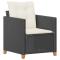 Chaise de jardin avec coussins noir résine tresséeDétendez-vous et profitez de l'extérieur dans cette chaise de jardin confortable ! Matériau durable : la résine tressée, également connue sous le nom de poly rotin, est un matériau synthétique solide et nécessitant peu d'entretien qui ressemble au rotin naturel. Il est léger, facile à nettoyer et couramment utilisé pour les meubles d'extérieur en raison de sa durabilité et de ses propriétés de résistance aux intempéries.Expérience d'assise confortable : ce mobilier d'extérieur, doté de coussins épais, offre une expérience d'assise confortable.Housse amovible et lavable : le coussin de siège est doté d'une housse amovible pour un lavage et un entretien faciles.Cadre robuste et stable : le cadre en acier enduit de poudre assure la solidité et la stabilité du meuble de jardin pour une utilisation quotidienne à l'extérieur. Bon à savoir :Pour que vos meubles d'extérieur restent beaux, nous vous recommandons de les protéger avec une housse imperméable. Maximum 110 kg par siège. Soyez conscient du risque de feux ouverts et d'autres sources de forte chaleur à proximité du produit.