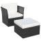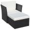 Chaise de jardin avec tabouret Noir Résine tressée Cet ensemble de chaises en rotin élégant et fonctionnel va devenir le point central de votre jardin ou patio. Il est parfait pour une utilisation toute l'année à l'intérieur et à l'extérieur. La chaise est construite en acier laqué robuste et en rotin PE de haute qualité, qui est très durable. Les coussins de siège amovibles et épais sont très confortables. La livraison comprend 1 chaise, 1 pouf, 1 coussin de dos et 2 coussins de siège. Remarque : Nous vous recommandons de couvrir l'ensemble de chaises pendant la pluie, la neige et le gel. ,
