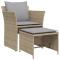 Chaise de jardin avec tabouret beige résine tresséeDétendez-vous et profitez de l'extérieur dans cette chaise de jardin confortable avec repose-pied ! Matériau durable : la résine tressée, également connue sous le nom de poly rotin, est un matériau synthétique solide et nécessitant peu d'entretien qui ressemble au rotin naturel. Il est léger, facile à nettoyer et couramment utilisé pour les meubles d'extérieur en raison de sa durabilité et de ses propriétés de résistance aux intempéries.Une expérience d'assise confortable : la chaise d'extérieur, dotée d'accoudoirs et d'un dossier de soutien, offre un confort exceptionnel. Les coussins rembourrés et le repose-pied assurent également une expérience d'assise confortable.Cadre robuste et stable : le cadre en acier enduit de poudre assure la solidité et la stabilité des fauteuils de jardin pour une utilisation quotidienne à l'extérieur. Bon à savoir :Pour que vos meubles d'extérieur restent beaux, nous vous recommandons de les protéger avec une housse imperméable. Maximum 110 kg par siège. Soyez conscient du risque de feux ouverts et d'autres sources de forte chaleur à proximité du produit.