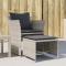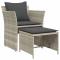Chaise de jardin avec tabouret gris clair résine tresséeDétendez-vous et profitez de l'extérieur dans cette chaise de jardin confortable avec repose-pied ! Matériau durable : la résine tressée, également connue sous le nom de poly rotin, est un matériau synthétique solide et nécessitant peu d'entretien qui ressemble au rotin naturel. Il est léger, facile à nettoyer et couramment utilisé pour les meubles d'extérieur en raison de sa durabilité et de ses propriétés de résistance aux intempéries.Une expérience d'assise confortable : la chaise d'extérieur, dotée d'accoudoirs et d'un dossier de soutien, offre un confort exceptionnel. Les coussins rembourrés et le repose-pied assurent également une expérience d'assise confortable.Cadre robuste et stable : le cadre en acier enduit de poudre assure la solidité et la stabilité des fauteuils de jardin pour une utilisation quotidienne à l'extérieur. Bon à savoir :Pour que vos meubles d'extérieur restent beaux, nous vous recommandons de les protéger avec une housse imperméable. Maximum 110 kg par siège. Soyez conscient du risque de feux ouverts et d'autres sources de forte chaleur à proximité du produit.