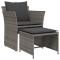 Chaise de jardin avec tabouret gris résine tresséeDétendez-vous et profitez de l'extérieur dans cette chaise de jardin confortable avec repose-pied ! Matériau durable : la résine tressée, également connue sous le nom de poly rotin, est un matériau synthétique solide et nécessitant peu d'entretien qui ressemble au rotin naturel. Il est léger, facile à nettoyer et couramment utilisé pour les meubles d'extérieur en raison de sa durabilité et de ses propriétés de résistance aux intempéries.Une expérience d'assise confortable : la chaise d'extérieur, dotée d'accoudoirs et d'un dossier de soutien, offre un confort exceptionnel. Les coussins rembourrés et le repose-pied assurent également une expérience d'assise confortable.Cadre robuste et stable : le cadre en acier enduit de poudre assure la solidité et la stabilité des fauteuils de jardin pour une utilisation quotidienne à l'extérieur. Bon à savoir :Pour que vos meubles d'extérieur restent beaux, nous vous recommandons de les protéger avec une housse imperméable. Maximum 110 kg par siège. Soyez conscient du risque de feux ouverts et d'autres sources de forte chaleur à proximité du produit.