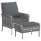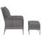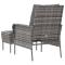 Chaise de jardin avec tabouret gris résine tresséeReposez vos pieds et profitez d'un confort d'assise optimal sur cette chaise de jardin avec tabouret ! Matériau durable : la résine tressée, également connue sous le nom de rotin poly, résiste aux intempéries et est facile à nettoyer. Elle reste belle à l'extérieur pendant une longue période. Elle est plus économique que d'autres matériaux, tout en offrant une excellente qualité, une commodité et un aspect esthétique. Cadre robuste et stable : le cadre en acier rend la chaise de jardin robuste et stable pour une utilisation quotidienne à l'extérieur. Expérience d'assise confortable : le dossier et les accoudoirs ajoutent un confort d'assise supplémentaire à la chaise de détente. De plus, elle est parfaite pour vous détendre et mettre vos pieds sur le repose-pied inclus. Coussins souples : les coussins bien rembourrés offrent du confort pendant votre temps d'assise. Remarque : Pour que vos meubles d'extérieur restent beaux, nous vous recommandons de les protéger avec une housse imperméable. Maximum 110 kg par siège. Soyez conscient du risque de feux ouverts et d'autres sources de forte chaleur à proximité du produit. ,