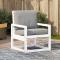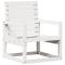 Chaise de jardin blanc 57,5x63x76 cm bois de pin massifCette chaise de jardin en bois sera un excellent ajout à votre jardin, patio ou terrasse, vous permettant de passer des moments agréables avec votre famille ou vos amis. Bois de pin massif : le siège de jardin est fabriqué en bois de pin massif pour plus de robustesse et de stabilité. Le bois de pin solide est un beau matériau naturel. Le bois de pin a un grain droit et les noeuds donnent au matériau son aspect caractéristique et rustique.Une expérience d'assise confortable : dotée d'accoudoirs et d'un dossier, la chaise d'extérieur vous offre un confort optimal.Design à lattes : le design à lattes de la chaise de jardin en bois empêche l'accumulation de l'eau, ce qui permet de garder le siège au sec et d'éviter un pourrissement inutile.Nombreuses applications : le fauteuil de jardin est parfait pour tout porche avant, patio, arrière-cour, pelouse, jardin, etc. Bon à savoir :Pour que vos meubles d'extérieur restent beaux, nous vous recommandons de les protéger avec une housse imperméable. Maximum 110 kg par siège.