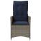 Chaise de jardin inclinable avec coussins en résine tressée griseDétendez-vous et profitez du plein air dans ce confortable fauteuil de jardin inclinable ! Matériau durable : le rotin PE, également connu sous le nom de polyrotin, est un matériau synthétique solide et facile d'entretien qui ressemble au rotin naturel. Il est léger, facile à nettoyer et couramment utilisé pour le mobilier d'extérieur en raison de sa durabilité et de sa résistance aux intempéries. Dossier réglable : ce siège de jardin est doté d'une poignée. Vous pouvez ajuster le dossier à n'importe quelle position en tirant sur la poignée et le remettre rapidement dans sa position initiale. Expérience d'assise confortable : ce mobilier d'extérieur, doté de coussins épais, offre une expérience d'assise confortable. Housse amovible et lavable : le coussin d'assise est doté d'une housse amovible pour un lavage et un entretien faciles. Le coussin de dossier est doté d'un rabat à l'arrière pour une fixation facile au dossier. Cadre robuste et stable : le cadre en acier avec revêtement en poudre garantit la solidité et la stabilité du mobilier de jardin pour une utilisation quotidienne en extérieur. Bon à savoir : Pour que votre mobilier d'extérieur reste beau, nous vous recommandons de le protéger avec une housse imperméable.