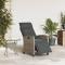 Chaise de jardin inclinable avec table d'appoint gris polyrotinDétendez-vous et profitez de l'extérieur dans cette chaise de jardin inclinable confortable ! Matériau durable : la résine tressée, également connue sous le nom de poly rotin, est un matériau synthétique solide et nécessitant peu d'entretien qui ressemble au rotin naturel. Elle est légère, facile à nettoyer et couramment utilisée pour les meubles d'extérieur en raison de sa durabilité et de ses propriétés de résistance aux intempéries. Dossier et repose-pied réglables : ce siège de jardin est doté d'une poignée. Vous pouvez régler le dossier et le repose-pied dans n'importe quelle position en tirant sur la poignée, et les remettre rapidement dans leur position initiale. Table d'appoint pratique : ce mobilier d'extérieur comprend une table d'appoint pliable avec un ressort à gaz sur les accoudoirs, offrant un endroit pratique pour garder vos essentiels à portée de main. Expérience d'assise confortable : ce mobilier d'extérieur, doté de coussins épais, offre une expérience d'assise confortable. Housse amovible et lavable : ce coussin de siège est doté d'une housse amovible pour un lavage et un entretien faciles. Le coussin de dossier est doté d'un rabat à l'arrière pour une fixation facile au dossier. Bon à savoir : Pour que vos meubles d'extérieur restent beaux, nous vous recommandons de les protéger avec une housse imperméable.