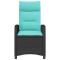 Chaise de jardin inclinable avec table d'appoint noir polyrotinDétendez-vous et profitez de l'extérieur dans cette chaise de jardin inclinable confortable ! Matériau durable : la résine tressée, également connue sous le nom de poly rotin, est un matériau synthétique solide et nécessitant peu d'entretien qui ressemble au rotin naturel. Elle est légère, facile à nettoyer et couramment utilisée pour les meubles d'extérieur en raison de sa durabilité et de ses propriétés de résistance aux intempéries. Dossier réglable : ce siège de jardin est doté d'une poignée. Vous pouvez régler le dossier dans n'importe quelle position en tirant sur la poignée, et les ramener rapidement à leur position d'origine. Table d'appoint pratique : ce mobilier d'extérieur comprend une table d'appoint pliable avec un ressort à gaz sur les accoudoirs, offrant un endroit pratique pour garder vos essentiels à portée de main. Expérience d'assise confortable : ce mobilier d'extérieur, doté de coussins épais, offre une expérience d'assise confortable. Housse amovible et lavable : ce coussin de siège est doté d'une housse amovible pour un lavage et un entretien faciles. Le coussin de dossier est doté d'un rabat à l'arrière pour une fixation facile au dossier. Bon à savoir : Pour que vos meubles d'extérieur restent beaux, nous vous recommandons de les protéger avec une housse imperméable.