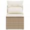 Chaise de jardin sans accoudoirs avec coussins beige poly rotinDétendez-vous et profitez de l'extérieur dans cette chaise de jardin confortable ! Rotin PE : la résine tressée, également connue sous le nom de poly rotin, est un matériau synthétique solide et nécessitant peu d'entretien qui ressemble au rotin naturel. Il est léger, facile à nettoyer et couramment utilisé pour les meubles d'extérieur en raison de sa durabilité et de ses propriétés de résistance aux intempéries.Fonction de rangement avec sac résistant à l'eau : chaque siège de jardin dispose d'un espace de rangement sous l'assise, complété par un sac résistant à l'eau pour ranger les coussins, les jouets et d'autres objets. Le sac intérieur est doté d'un couvercle et peut être solidement fixé au siège à l'aide de bandes auto-agrippantes pour plus de stabilité.Expérience d'assise confortable : ce mobilier d'extérieur, doté de coussins épais, offre une expérience d'assise confortable.Housse amovible et lavable : le coussin de siège est doté d'une housse amovible pour un lavage et un entretien faciles.Cadre robuste et stable : le cadre en acier enduit de poudre assure la solidité et la stabilité du meuble de jardin pour une utilisation quotidienne à l'extérieur.Conception modulaire : ce meuble d'extérieur a une conception modulaire, ce qui le rend complètement flexible et facile à déplacer, afin que vous puissiez créer un agencement de meubles d'extérieur personnalisé. Bon à savoir :Pour que vos meubles d'extérieur restent beaux, nous vous recommandons de les protéger avec une housse imperméable.