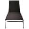 Chaise longue Acier et textilène NoirCette chaise longue élégante et fonctionnelle est idéale pour passer une après-midi de détente dans le jardin ou au camping. La chaise longue durable et facile à nettoyer est recouverte de textilène, qui est doux et confortable. Construite avec un cadre en acier robuste, la chaise longue d'extérieur est durable. Elle sera un excellent accessoire à votre espace de vie extérieur ! Remarque : nous vous recommandons d'utiliser une housse (non incluse) pour protéger le produit lorsque vous ne l'utilisez pas. Ne convient pas aux zones humides, nécessitant une protection contre la pluie. ,