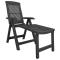 Chaise longue anthracite plastiqueDétendez-vous et prenez une pause sur cette chaise longue dans votre jardin, sur votre patio ou n'importe quel espace de vie extérieur ! Matériau durable : la chaise longue d'extérieur confortable est fabriquée en plastique durable et résistant aux intempéries, qui convient à une utilisation à l'extérieur. Fonction pliable : la chaise longue peut être pliée pour gagner de la place lorsqu'elle n'est pas utilisée. Dossier réglable : le dossier de la chaise longue s'incline en 5 positions et vous pouvez profiter d'un maximum de confort en choisissant la position et l'angle optimaux. Déplacement facile : grâce à son design léger, vous pouvez déplacer la chaise longue facilement. Bon à savoir : Pour que vos meubles d'extérieur restent beaux, nous vous recommandons de les protéger avec une housse imperméable. Maximum 110 kg par siège. ,