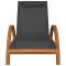 Chaise longue avec coussin gris textilène/bois massif peuplierDétendez-vous dans votre jardin ou sur votre terrasse sur cette confortable chaise longue ! Cadre en bois de peuplier massif : le cadre du transat est fabriqué en bois de peuplier massif, durable et flexible, dont la surface est lisse et sans noeuds.Matériau durable : le tissu en textilène permet à l'air de circuler librement à travers lui tout en étant résistant aux rayons UV. Le textilène est donc idéal pour les temps chauds. En tant que matériau durable et solide, il est très résistant aux déchirures, aux perforations et aux moisissures.Dossier réglable : la chaise longue d'extérieur confortable dispose d'un dossier inclinable à 4 positions pour une relaxation optimale.Expérience confortable : la chaise longue de jardin est dotée d'un dossier confortable et d'accoudoirs élégamment incurvés des deux côtés, pour un confort optimal. De plus, l'oreiller moelleux offre un confort supplémentaire lors de vos moments de détente. Remarque : Pour que vos meubles d'extérieur restent beaux, nous vous recommandons de les protéger avec une housse imperméable. Maximum 110 kg par siège. Soyez conscient du risque de feux ouverts et d'autres sources de forte chaleur à proximité du produit.
