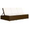 Chaise longue convertible avec coussin Résine tressée MarronProfitez de votre après-midi de loisirs dans votre propre espace extérieur grâce à notre luxueux canapé-lit convertible 2 en 1 en résine tressée. Notre chaise longue est fabriquée en résine tressée, qui est légère, résistante à l'eau, facile à nettoyer et conçue pour être utilisée à l'extérieur toute l'année. Le cadre en acier enduit de poudre assure une grande stabilité. Le dossier flexible est entièrement réglable sur deux côtés, donc vous pouvez facilement le transformer d'une chaise longue couchée en un canapé d'assise. Le coussin épaississement rembourré et amovible et les coussins de taille avec remplissage de mousse offrent un confort optimal. La housse de coussin est amovible pour faciliter le lavage et l'entretien. Le canapé-lit est facile à assembler.