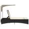 Chaise longue double et auvent et coussins noir résine tresséeDétendez-vous et profitez du plein air sur cette confortable chaise longue double ! Matériau durable : la résine tressée, également connue sous le nom de poly rotin, est un matériau synthétique solide et nécessitant peu d'entretien qui ressemble au rotin naturel. Il est léger, facile à nettoyer et couramment utilisé pour les meubles d'extérieur en raison de sa durabilité et de ses propriétés de résistance aux intempéries. Dossier réglables : ce transat est doté de dossiers à 5 positions réglables, ce qui vous permet de trouver facilement la position la plus confortable et la plus appropriée pour la détente. Conception de l'auvent : grâce à la conception de l'auvent, vous pouvez créer un environnement extérieur frais et agréable tout au long de la journée. Expérience d'assise confortable : ce mobilier d'extérieur, doté de coussins épais, offre une expérience d'assise confortable. Housse amovible et lavable : ces coussins de siège sont dotés de housses amovibles pour un lavage et un entretien faciles. Bon à savoir : Pour que vos meubles d'extérieur restent beaux, nous vous recommandons de les protéger avec une housse imperméable. ,