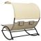 Chaise longue double avec auvent Textilène Taupe et crèmeQue vous souhaitiez vous détendre seul ou en couple, cette chaise longue double est un excellent choix, idéale pour l'extérieur. Ce transat à bascule dispose d'un cadre en acier robuste, qui apporte une super stabilité et assure une longue durée de vie de service. Le lit de repos est conçu avec un tissu textilène fort et respirant, offrant le confort suprême pendant votre temps de détente. Les deux petits oreillers inclus ajoutent un confort supplémentaire. De plus, l'auvent vous protège contre les rayons UV nocifs. Remarque : afin de prolonger la durée de vie des meubles d'extérieur, nous vous recommandons de les protéger avec une housse imperméable. ,