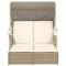 Chaise longue double avec auvent et coussins beige poly rotinDétendez-vous et profitez du plein air sur cette confortable chaise longue double ! Matériau durable : la résine tressée, également connue sous le nom de poly rotin, est un matériau synthétique solide et nécessitant peu d'entretien qui ressemble au rotin naturel. Il est léger, facile à nettoyer et couramment utilisé pour les meubles d'extérieur en raison de sa durabilité et de ses propriétés de résistance aux intempéries. Dossier réglables : ce meuble d'extérieur est doté d'un dossier à 2 positions réglables, ce qui vous permet de trouver facilement la position la plus confortable et la plus appropriée pour la détente. Auvent rétractable : grâce à l'auvent rétractable, vous pouvez créer un environnement extérieur frais et agréable tout au long de la journée. Expérience d'assise confortable : ce mobilier d'extérieur, doté de coussins épais, offre une expérience d'assise confortable. Housse amovible et lavable : ces coussins de siège sont dotés de housses amovibles pour un lavage et un entretien faciles. Bon à savoir : Pour que vos meubles d'extérieur restent beaux, nous vous recommandons de les protéger avec une housse imperméable. ,