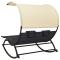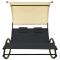 Chaise longue double avec auvent textilène noir et crèmeQue vous souhaitiez vous détendre seul ou en couple, cette chaise longue double est un excellent choix, idéale pour l'extérieur. Ce transat à bascule dispose d'un cadre en acier robuste, qui apporte une super stabilité et assure une longue durée de vie de service. Le lit de repos est conçu avec un tissu textilène fort et respirant, offrant le confort suprême pendant votre temps de détente. Les deux petits oreillers inclus ajoutent un confort supplémentaire. De plus, l'auvent vous protège contre les rayons UV nocifs. Remarque : afin de prolonger la durée de vie des meubles d'extérieur, nous vous recommandons de les protéger avec une housse imperméable. ,