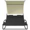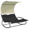 Chaise longue double à bascule avec auvent Noir et crèmeCette chaise longue double à bascule allie style et fonctionnalité, ce qui la rend idéale pour vous détendre au bord de la piscine, sur le balcon, le patio ou dans le jardin pendant vos vacances ou vos loisirs. Cadre robuste : la chaise longue double présente un cadre en acier enduit de poudre qui assure robustesse et stabilité. Matériau de siège durable : la zone de couchage est fabriquée en tissu en textilène, résistant à l'eau, respirant et adapté à une utilisation à l'extérieur. Matériau de l'auvent solide : l'auvent est fabriqué en polyester. Le polyester est un matériau synthétique connu pour sa haute protection contre les UV et sa résistance à la traction. Le polyester est résistant à l'eau, ce qui en fait le choix idéal pour les conditions humides ou pluvieuses, et il est facile à nettoyer. Oreillers confortables : les oreillers amovibles offrent un excellent soutien pour votre tête et votre nuque, ce qui vous apporte un confort supplémentaire. Design à bascule : vous pouvez vous détendre en vous asseyant confortablement tout en profitant d'un mouvement de bascule apaisant et doux. Remarque : Afin de prolonger la durée de vie de votre mobilier d'extérieur, nous vous recommandons de le protéger avec une housse imperméable. ,