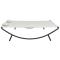Chaise longue d'extérieur Tissu CrèmeCe lit de repos sera une cachette idéale pour vous détendre et profiter de votre temps libre dans votre jardin, arrière-cour, patio ou sur la plage. Fabriquée en tissu oxford résistant aux intempéries, la chaise longue peut être utilisée à l'extérieur toute l'année. Le cadre en acier enduit de poudre confère également de la stabilité et assure la durabilité de la chaise longue. Elle est également livrée avec deux oreillers extrêmement confortables et bien rembourrés pour un confort ultime. Les housses en polyester nécessitant peu d'entretien peuvent également être enlevées et lavées. Cette chaise longue est facile à assembler. La livraison comprend une chaise longue et deux oreillers. Remarque : afin de prolonger la durée de vie des meubles d'extérieur, nous vous recommandons de les protéger avec une housse imperméable.