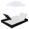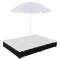 Une chaise longue double avec 2 coussins amovibles et 1 parasol