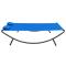 Chaise longue d'extérieur tissu bleuCe lit de repos sera une cachette idéale pour vous détendre et profiter de votre temps libre dans votre jardin, arrière-cour, sur le patio ou sur la plage. Fabriquée en tissu oxford résistant aux intempéries, la chaise longue peut être utilisée à l'extérieur toute l'année. Le cadre en acier enduit de poudre confère également de la stabilité et assure la durabilité de la chaise longue. Elle est également livrée avec deux oreillers extrêmement confortables et bien rembourrés pour un confort suprême. Les housses en polyester nécessitant peu d'entretien peuvent également être enlevées et lavées. Remarque : afin de prolonger la durée de vie des meubles d'extérieur, nous vous recommandons de les protéger avec une housse imperméable.