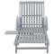 Chaise longue de jardin avec coussin Bois d'acacia solideDétendez-vous et reposez-vous dans votre jardin ou patio sur cette confortable chaise longue en bois ! Vous pouvez passer un après-midi de détente dans votre propre espace extérieur. Elle est parfaite pour une piscine, balcon, jardin, etc. Cette chaise longue d'extérieur est fabriquée en bois d'acacia massif avec une finition de couleur grise, ce qui la rend robuste et stable. Le dossier et le repose-pied sont réglables, et vous pouvez verrouiller la chaise longue dans la position souhaitée. Cette chaise longue de jardin peut être facilement déplacée autour de la maison avec 2 roues équipées. Le transat dispose d'une table coulissante pratique, pour placer votre téléphone, lunettes de soleil, boisson et autres petits articles. Le coussin ajoute un confort supplémentaire pendant que vous vous prélassez. Chaque coussin comprend deux jeux de cordes pour que vous puissiez le fixer solidement sur la chaise longue. Remarque : afin de prolonger la durée de vie des meubles d'extérieur, nous vous recommandons de les protéger avec une housse imperméable. ,