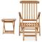 Chaise longue de jardin avec repose-pied et table Bois de teckDétendez-vous dans le jardin ou sur le patio sur cette chaise longue confortable ! Elle deviendra l'un de vos endroits préférés pour vous asseoir ! Fabriquée en bois dur de teck extrêmement durable, cette pièce de meuble en teck a été chevronnée, séchée au four puis finement poncée pour lui donner un aspect très lisse. Le bois de teck est connu pour sa résistance exceptionnelle aux intempéries, ce qui le rend bien plus adapté aux meubles de jardin que tout autre type de bois. Le bois de teck est le choix idéal si vous souhaitez acheter un meuble de jardin durable. Ses larges accoudoirs, son dossier haut et son siège profilé ajoutent à l'attrait visuel de la chaise longue ainsi qu'à son confort d'assise. Le dossier s'incline pour que vous puissiez trouver la position la plus confortable. De plus, le repose-pied amovible complète le design classique de la chaise longue d'extérieur et la rend encore plus confortable. De plus, la table vous permet de placer votre téléphone, vos lunettes de soleil, votre boisson et autres petits objets. Lorsqu'elles ne sont pas utilisées, la chaise longue et la table peuvent être facilement repliées pour gagner de la place. Maximum 110 kg par siège. ,