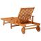 Chaise longue de jardin avec table et coussin Bois d'acaciaAvec cette chaise longue en bois d'acacia massif à la mode, vous trouverez toujours un endroit confortable pour vous détendre sur votre terrasse ou dans votre jardin. Cette chaise longue de jardin et la table sont fabriquées en bois d'acacia massif, ce qui les rend robustes et stables. La chaise longue de jardin peut être facilement déplacée autour de la maison grâce aux 2 roues. Le dossier et le repose-pied sont réglables, et vous pouvez également verrouiller la chaise longue en bois dans la position souhaitée. La table coulissante et la table latérale pliable vous permettent de placer votre téléphone, lunettes de soleil, boisson et autres petits articles. Le coussin ajoute un confort supplémentaire tout en vous prélassant. Chaque coussin comprend deux jeux de cordes pour le fixer fermement sur le transat. Maximum 110 kg par siège. ,