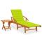 Chaise longue de jardin avec table et coussin Bois d'acaciaAvec cette chaise longue en bois d'acacia massif à la mode, vous trouverez toujours un endroit confortable pour vous détendre sur votre terrasse ou dans votre jardin. Cette chaise longue de jardin et la table sont fabriquées en bois d'acacia massif, ce qui les rend robustes et stables. La chaise longue de jardin peut être facilement déplacée autour de la maison grâce aux 2 roues. Le dossier et le repose-pied sont réglables, et vous pouvez également verrouiller la chaise longue en bois dans la position souhaitée. La table coulissante et la table latérale pliable vous permettent de placer votre téléphone, lunettes de soleil, boisson et autres petits articles. Le coussin ajoute un confort supplémentaire tout en vous prélassant. Chaque coussin comprend deux jeux de cordes pour le fixer fermement sur le transat. Maximum 110 kg par siège. ,