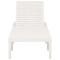 Chaise longue plastique blancAvec cette chaise longue, vous aurez toujours un endroit confortable pour vous détendre dans votre espace de vie extérieur. Cette chaise longue de jardin est en plastique, ce qui la rend facile à nettoyer. Le dossier est réglable afin que vous puissiez toujours trouver la position la plus confortable. Grâce à son design léger, vous pouvez la déplacer facilement. ,