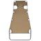 Chaise longue pliable et coussin de tête Dossier réglable TaupeCette chaise longue pliante avec coussins souples pour la tête sera un choix idéal pour vous détendre et profiter d'une journée dans le jardin ou sur la plage. Le lit de bronzage est équipé d'un dossier confortable et réglable. Fabriqué en tissu Oxford de haute qualité, le lit de camping est très confortable. Le cadre en acier enduit de poudre le rend très stable et durable. La chaise longue se replie facilement après utilisation, ce qui permet de ne pas prendre trop de place pour le rangement. ,