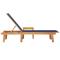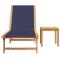 Chaise longue et table bleu bois d'acacia solide et textilèneCette chaise longue confortable avec dossier réglable, permettant de vous asseoir ou de vous allonger, est parfaite pour vous détendre au soleil. Robuste et stable : le bois d'acacia massif est connu pour sa solidité et sa durabilité. Ses couleurs variées et ses grains uniques lui confèrent un aspect attrayant. Sa stabilité et sa résistance aux intempéries en font un matériau idéal pour la fabrication de meubles d'intérieur et d'extérieur. Durable et longue durée de vie : le tissu textilène est apprécié pour sa durabilité, résistance à l'eau et à la décoloration, facilité d'entretien et protection contre les rayons UV et la moisissure, ce qui en fait un choix idéal pour le meuble d'extérieur et les structures d'ombrage. Dossier réglables : ce transat est doté d'un dossier à 5 positions réglables, ce qui vous permet de trouver facilement la position la plus confortable et la plus appropriée pour la détente. Dessus stable et facile à nettoyer : cette table de jardin a un dessus en bois d'acacia robuste, durable et facile à nettoyer avec un chiffon humide. Bon à savoir : Pour que vos meubles d'extérieur restent beaux, nous vous recommandons de les protéger avec une housse imperméable. Maximum 110 kg par siège. ,
