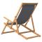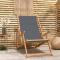 Chaise de plage pliable Bois de teck solide GrisCette chaise de plage pliable présente un design emblématique et est un choix parfait pour votre jardin ou pour la plage ou le camping. Matériau de première qualité : le bois de teck massif est un matériau naturel magnifique. Traitez la surface avec de l'huile, de la cire, de la laque ou une finition vitrée pour obtenir une surface plus résistante et un nettoyage facile. Le bois de teck est très robuste et résistant aux intempéries. Siège confortable : le siège et le dossier en tissu ajoutent au confort d'assise de la chaise. Le dossier peut être ajusté afin que vous puissiez trouver la position assise ou allongée la plus confortable possible. Rangement facile : la chaise de terrasse se plie facilement et peut être facilement rangée pour économiser de l'espace. Remarque :Afin de prolonger la durée de vie de votre mobilier d'extérieur, nous vous recommandons de le protéger avec une housse imperméable. Maximum 110 kg par siège.