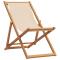 Chaise pliable de plage beige bois massif d'eucalyptus et tissuProfitez de vos temps libre avec cette confortable chaise de plage en bois ! La chaise de plage inclinable sera un excellent supplément à votre jardin, terrasse et balcon. Tissu durable : le tissu présente un aspect simple et épuré tout en restant respirant et durable. Cadre robuste : la chaise longue est construite avec un cadre en bois massif d'eucalyptus, ce qui leur confère robustesse et stabilité. Le bois massif d'eucalyptus est un magnifique matériau naturel. Le bois d'eucalyptus est extrêmement dense et hydrofuge. Ce matériau est connu pour sa riche couleur brun rougeâtre. Réglable en 3 positions : le siège de plage peut être réglé en 3 positions d'inclinaison pour un confort optimal. Fonction pliable : la chaise de plage en bois peut être pliée pour faciliter le transport et le stockage lorsqu'elle n'est pas utilisée. Bon à savoir : Pour que vos meubles d'extérieur restent beaux, nous vous recommandons de les protéger avec une housse imperméable. Maximum 110 kg par siège. ,