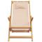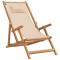 Chaise pliable de plage beige bois massif d'eucalyptus et tissuProfitez de vos temps libre avec cette confortable chaise de plage en bois ! La chaise de plage inclinable sera un excellent supplément à votre jardin, terrasse et balcon. Tissu durable : le tissu présente un aspect simple et épuré tout en restant respirant et durable. Cadre robuste : la chaise longue est construite avec un cadre en bois massif d'eucalyptus, ce qui leur confère robustesse et stabilité. Le bois massif d'eucalyptus est un magnifique matériau naturel. Le bois d'eucalyptus est extrêmement dense et hydrofuge. Ce matériau est connu pour sa riche couleur brun rougeâtre. Réglable en 3 positions : le siège de plage peut être réglé en 3 positions d'inclinaison pour un confort optimal. Expérience d'assise confortable : le coussin et les accoudoirs ajoutent un confort d'assise supplémentaire à la chaise d'extérieur. Fonction pliable : la chaise de plage en bois peut être pliée pour faciliter le transport et le stockage lorsqu'elle n'est pas utilisée. Bon à savoir : Pour que vos meubles d'extérieur restent beaux, nous vous recommandons de les protéger avec une housse imperméable. Maximum 110 kg par siège. ,