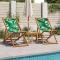 Chaise pliable plage motif de feuilles bois d'eucalyptus/tissuProfitez de vos temps libre avec cette confortable chaise de plage en bois ! La chaise de plage inclinable sera un excellent supplément à votre jardin, terrasse et balcon. Tissu durable : le tissu présente un aspect simple et épuré tout en restant respirant et durable. Cadre robuste : la chaise longue est construite avec un cadre en bois massif d'eucalyptus, ce qui leur confère robustesse et stabilité. Le bois massif d'eucalyptus est un magnifique matériau naturel. Le bois d'eucalyptus est extrêmement dense et hydrofuge. Ce matériau est connu pour sa riche couleur brun rougeâtre. Réglable en 3 positions : le siège de plage peut être réglé en 3 positions d'inclinaison pour un confort optimal. Fonction pliable : la chaise de plage en bois peut être pliée pour faciliter le transport et le stockage lorsqu'elle n'est pas utilisée. Bon à savoir : Pour que vos meubles d'extérieur restent beaux, nous vous recommandons de les protéger avec une housse imperméable. Maximum 110 kg par siège. ,