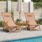 Chaise pliable de plage taupe bois d'eucalyptus massif et tissuProfitez de vos temps libre avec cette confortable chaise de plage en bois ! La chaise inclinable sera un excellent supplément à votre jardin, terrasse et balcon. Tissu durable : le tissu présente un aspect simple et épuré tout en restant respirant et durable. Cadre robuste : la chaise longue est construite avec un cadre en bois massif d'eucalyptus, ce qui leur confère robustesse et stabilité. Le bois massif d'eucalyptus est un magnifique matériau naturel. Le bois d'eucalyptus est extrêmement dense et hydrofuge. Ce matériau est connu pour sa riche couleur brun rougeâtre. Réglable en 3 positions : le siège de plage peut être réglé en 3 positions d'inclinaison pour un confort optimal. Expérience d'assise confortable : le coussin et les accoudoirs ajoutent un confort d'assise supplémentaire à la chaise d'extérieur. Fonction pliable : la chaise de plage en bois peut être pliée pour faciliter le transport et le stockage lorsqu'elle n'est pas utilisée. Bon à savoir : Pour que vos meubles d'extérieur restent beaux, nous vous recommandons de les protéger avec une housse imperméable. Maximum 110 kg par siège. ,