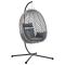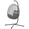 Chaise suspendue anthracite et gris 104 x 100 x 191 cmCette chaise oeuf suspendue avec support donne un look moderne aux coins détente. Elle est spécialement conçue pour ceux qui apprécient les moments de calme, affichant une esthétique épurée qui s'harmonise avec n'importe quel lieu. Que ce soit dans votre salon, sur un balcon, dans un jardin ou sur une terrasse, elle offre un espace tranquille pour échapper à l'agitation quotidienne. Sa forme ovale vous enveloppe de confort, et son solide poly rattan assure une expérience relaxante et sécurisée. Avec des coussins moelleux, c'est l'endroit idéal pour se ressourcer après une longue journée. Structure en poly rattan solide : Cette chaise oeuf est faite d'un poly rattan de qualité, léger et résistant aux intempéries. Elle tient face aux éléments extérieurs, ainsi qu'à une utilisation quotidienne, offrant un bon siège pour profiter de l'été. Peu d'entretien est requis, vous permettant de vous concentrer sur votre détente. Conception ergonomique : Cette chaise a été pensée pour votre confort. Sa forme ovale entoure les utilisateurs, offrant une expérience agréable qui soulage les points de pression tout en favorisant une bonne posture. C'est un endroit confortable où vous pouvez rester assis longtemps sans inconfort, idéal pour se relaxer. Fonction pliable pratique : Le design pliant de la chaise la rend facile à ranger ou à transporter, idéale pour ceux qui réorganisent souvent leur espace. En un clin d'oeil, elle peut se plier pour réduire le désordre dans votre intérieur ou libérer de l'espace sur votre balcon quand vous ne l'utilisez pas. Placement flexible : Utilisable partout, cette chaise s'adapte à votre façon de vous détendre, que ce soit à l'intérieur ou à l'extérieur. Elle apporte une touche de sophistication dans votre salon ou sur votre terrasse ensoleillée, s'harmonisant avec divers styles de décoration. Composants inclus : Livrée complète avec un support sûr, un repose-tête et un coussin moelleux pour un confort optimal, cette chaise vous offre tout le nécessaire pour profiter dès le premier jour, sans achats supplémentaires nécessaires.