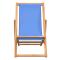 Chaise de terrasse Teck 56x105x96 cm BleuCette chaise de terrasse iconique sera idéale pour votre jardin ou pour la plage ou le camping. Fabriquée en bois dur de teck extrêmement durable, cette pièce de meuble en teck a été chevronnée, séchée au four puis finement poncée pour lui donner un aspect très lisse. Le bois de teck est connu pour sa résistance exceptionnelle aux intempéries, ce qui le rend bien plus adapté aux meubles de jardin que tout autre type de bois. Le bois de teck est le choix idéal si vous souhaitez acheter un meuble de jardin durable. Le siège et le dossier en tissu de haute qualité ajoutent au confort d'assise de la chaise. Le dossier peut être ajusté pour vous permettre de trouver la position assise ou couchée la plus confortable. La chaise se plie facilement et peut être facilement rangée pour gagner de la place. L'assemblage est facile. Maximum 110 kg par siège.