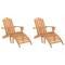 Chaises Adirondack de jardin repose-pieds lot de 2 Bois acaciaCes chaises de jardin Adirondack avec repose-pieds en bois d'acacia massif sont un excellent supplément à votre jardin, patio ou terrasse. Matériau robuste : le bois d'acacia massif est un matériau naturel magnifique. Le bois d'acacia est un bois dur tropical, qui est dense, robuste et durable. Fabriqués en bois d'acacia massif, ces fauteuils de jardin sont résistants aux intempéries. Surface facile à nettoyer : la surface à finition à l'huile rend les chaises d'extérieur en bois faciles à nettoyer avec un chiffon humide. Fauteuils pliables : ces chaises Adirondack sont pliables pour un rangement et un transport faciles. Siège confortable : ces chaises en bois massif sont équipées d'accoudoirs larges, de dossiers hauts, de sièges profilés et de repose-pieds, qui ajoutent à leur attrait visuel ainsi qu'au confort d'assise. Remarque : Afin de prolonger la durée de vie de votre mobilier d'extérieur, nous vous recommandons de le protéger avec une housse imperméable. Chaque produit est livré avec un manuel de montage dans la boîte pour un montage facile. Maximum 110 kg par siège. ,