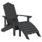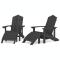 Chaises Adirondack lot de 2 avec repose-pieds PEHD AnthraciteCes chaises Adirondack de jardin avec repose-pieds sont un supplément pratique et élégant à votre jardin, votre patio ou votre terrasse. Matériau de première qualité : les chaises d'extérieur sont fabriquées en PEHD (polyéthylène haute densité) résistant aux intempéries et aux rayons UV. Ce matériau améliore parfaitement les défauts du bois massif, qui se décompose et se fissure facilement, surtout les jours de pluie. Surface nécessitant peu d'entretien : les fauteuils de jardin ne nécessitent aucune peinture, teinture, imperméabilisation ou entretien similaire. Il suffit de les laver avec du savon, de l'eau et une brosse à poils doux. Avec un minimum d'entretien, ces chaises durables vous offriront des années d'utilisation. Les repose-pieds sont détachables et peuvent fournir un soutien supplémentaire pour vos pieds. Remarque : Afin de prolonger la durée de vie de votre mobilier d'extérieur, nous vous recommandons de le protéger avec une housse imperméable. Maximum 110 kg par siège. ,