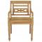 Chaises Batavia lot de 2 Bois de teck solideCes chaises Batavia confortables et élégantes en bois prendront une allure tout simplement magnifique dans votre jardin ou patio. Fabriquée en bois dur de teck extrêmement durable, cette pièce de meuble en teck a été chevronnée, séchée au four puis finement poncée pour lui donner un aspect très lisse. Le bois de teck est connu pour sa résistance exceptionnelle aux intempéries, ce qui le rend bien plus adapté aux meubles de jardin que tout autre type de bois. Le bois de teck est le choix idéal si vous souhaitez acheter une pièce de meubles de jardin durable. Grâce à leur surface finement poncée, les chaises sont résistantes aux intempéries et faciles à nettoyer, et donneront une touche de charme rustique à votre jardin. Elles sont très appropriées pour vous détendre ou dîner avec vos amis ou votre famille. La livraison inclut 2 chaises Batavia. L'assemblage est facile. Maximum 110 kg par siège.