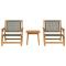Chaises de Jardin avec Table - 3 pièces en Bois d'Acacia Massif GrisCet ensemble de chaises et table de jardin apporte un bon mélange de confort et style, super pour prendre un café, discuter ou juste se détendre dehors. Son petit look chic avec le rattan gris et le bois d'acacia massif fait de lui un joli ajout à votre patio ou jardin. Construction Durable : Fabriqué avec du rattan gris de qualité et du bois d'acacia massif, chaque pièce est faite pour tenir face aux intempéries et durer. Assise Confortable : Les chaises ont des accoudoirs et un cadre à lattes pour plus de confort, parfaites pour se détendre lors des chaudes soirées. Esthétique Belle : Les teintes grises et brunes ajoutent une touche moderne qui améliore votre déco extérieure. Entretien Facile : La finition huilée sur le bois d'acacia protège de l'humidité et facilite le nettoyage, pour que vous profitiez de votre mobilier sans soucis. Taille Compacte : Conçu pour deux, l'ensemble est parfait pour des moments détendus et chaleureux.