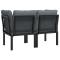 Chaises d'angle de jardin avec coussins lot de 2 noir/grisCes chaises d'angle de jardin tendances, au design élégant et contemporain, sont parfaites pour manger ou vous détendre dans votre jardin. Matériau résistant aux intempéries : la résine tressée, également connue sous le nom de rotin poly, résiste aux intempéries et est facile à nettoyer. Elle reste belle à l'extérieur pendant une longue période. Elle offre une excellente qualité, commodité et un aspect esthétique. Cadre robuste et stable : le cadre en acier enduit de poudre de la chaise assure robustesse et stabilité. Expérience d'assise confortable : le dossier ajoute un confort d'assise supplémentaire pour la chaise simple. De plus, les coussins bien rembourrés offrent un confort pour votre temps d'assise. Conception modulaire : la chaise est flexible et facile à déplacer, vous pouvez donc la combiner avec d'autres segments modulaires dans la boutique en ligne pour créer vos propres configurations de salon de jardin ! Bon à savoir : Pour faciliter au maximum le montage, chaque produit est livré avec des instructions. Remarque : Pour que vos meubles d'extérieur restent beaux, nous vous recommandons de les protéger avec une housse imperméable. Maximum 110 kg par siège. Soyez conscient du risque de feux ouverts et d'autres sources de forte chaleur à proximité du produit. ,